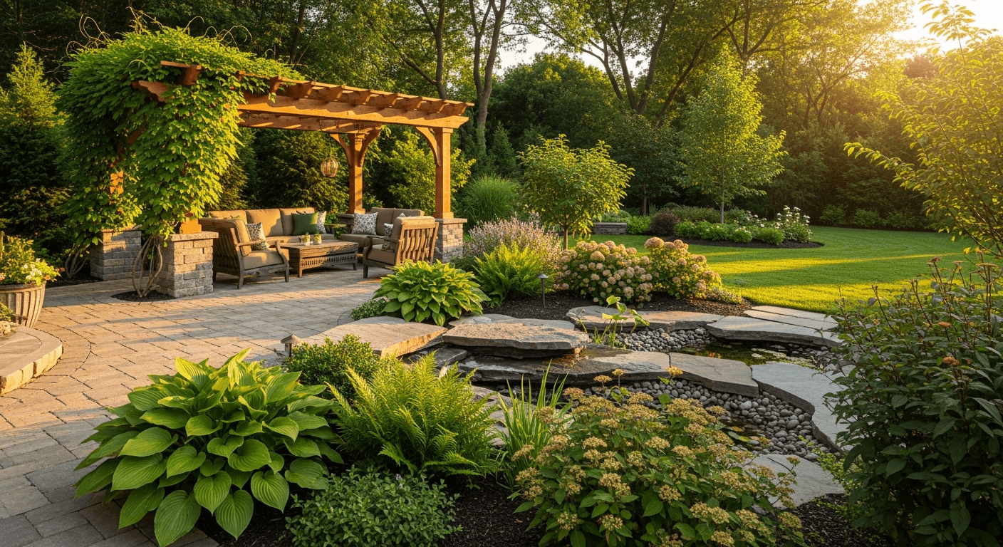 Transform your West Bloomfield property with a custom outdoor design covering patios, pergolas, and plantings.